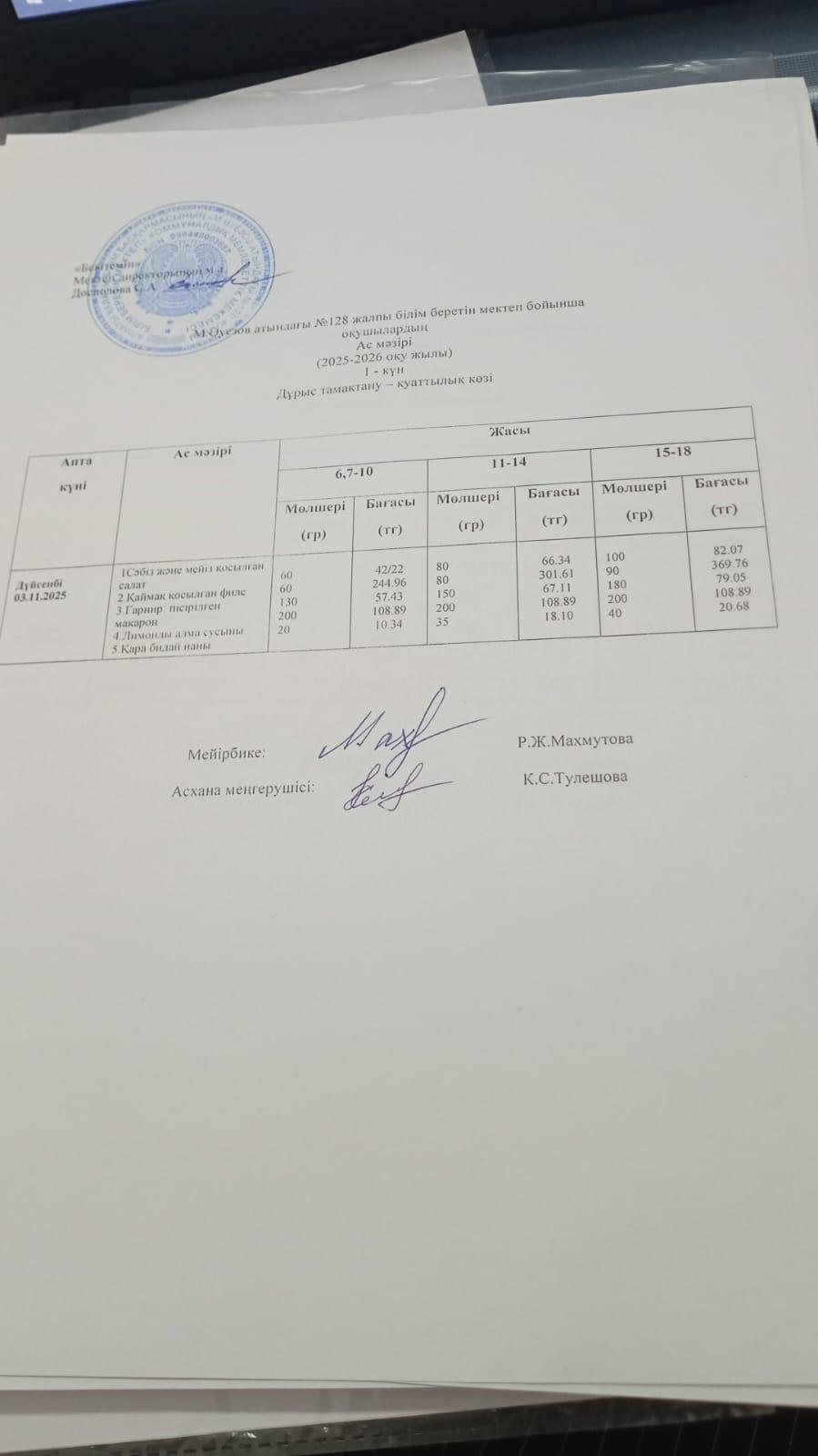 15 ноябрь 2022 Ас мәзірі 15.11.2022ж