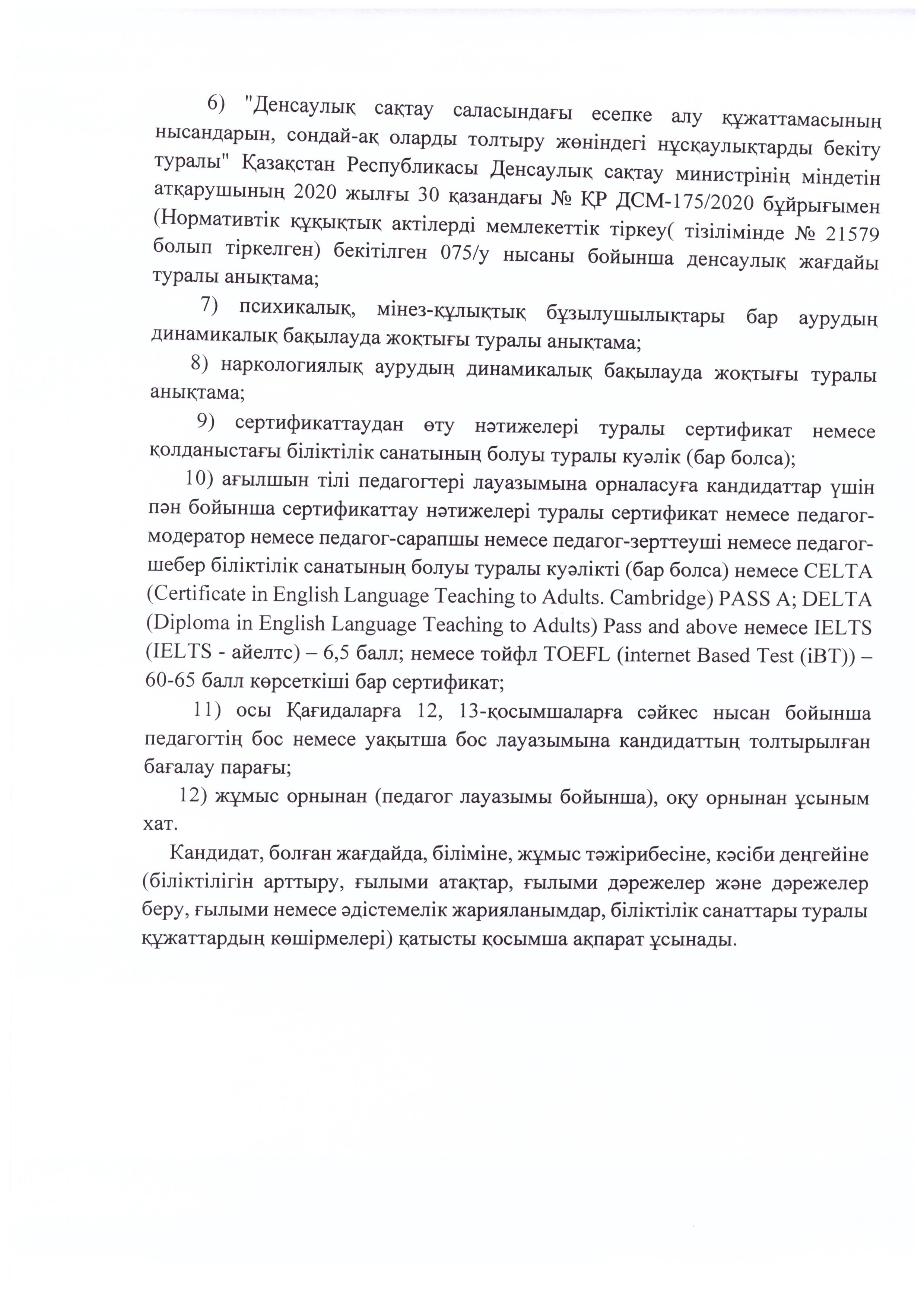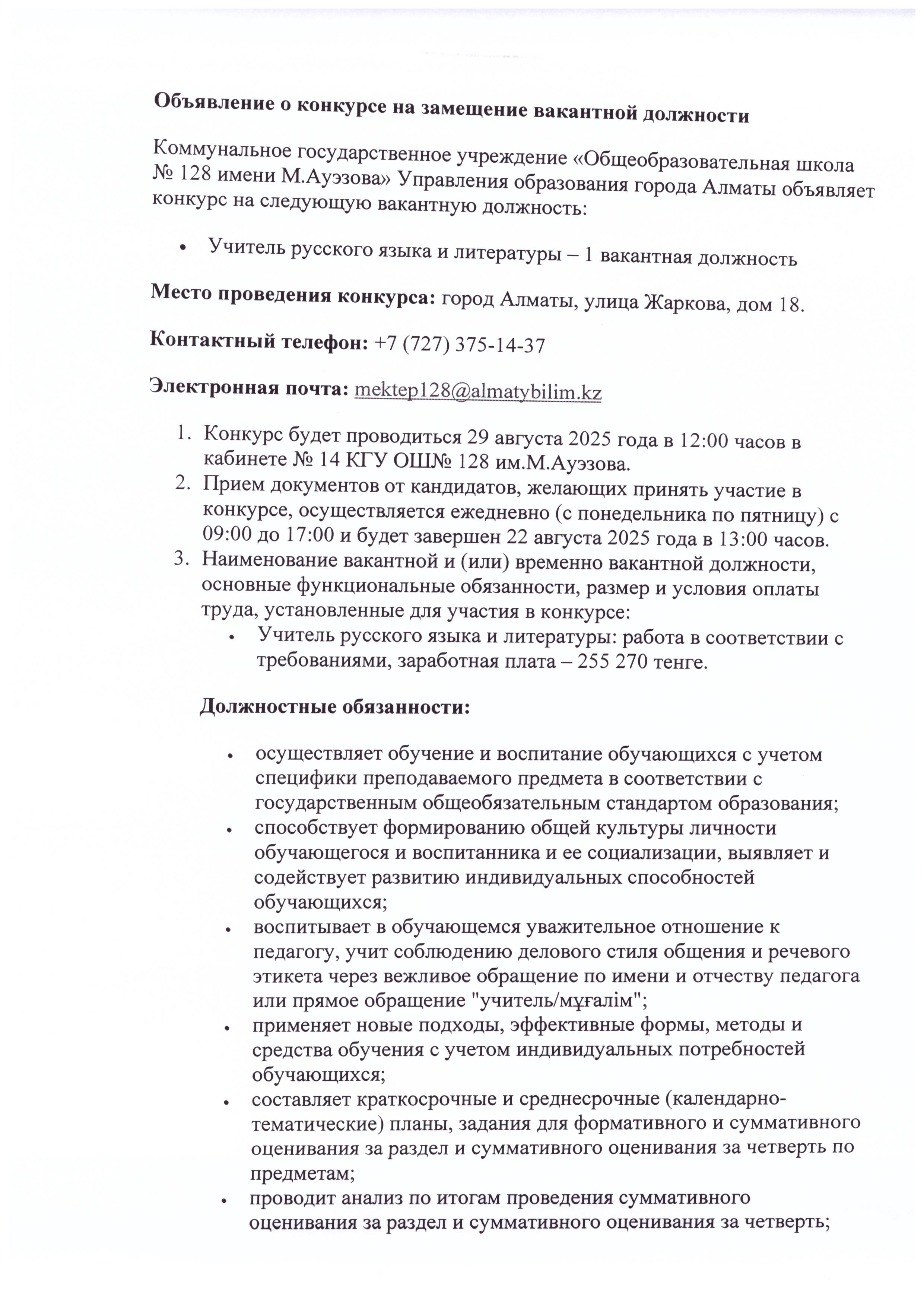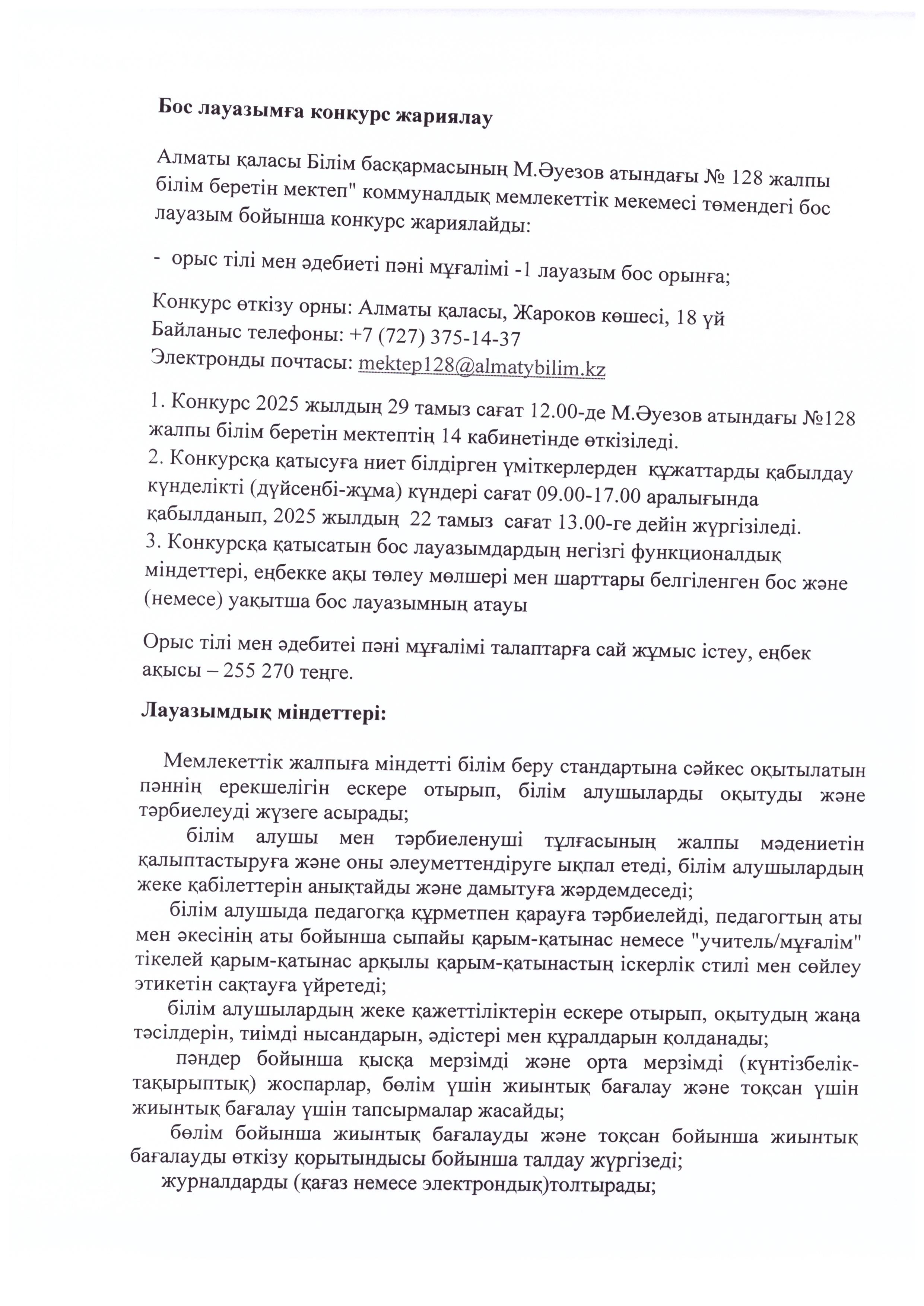 Бос лауазымға конкурс жариялау