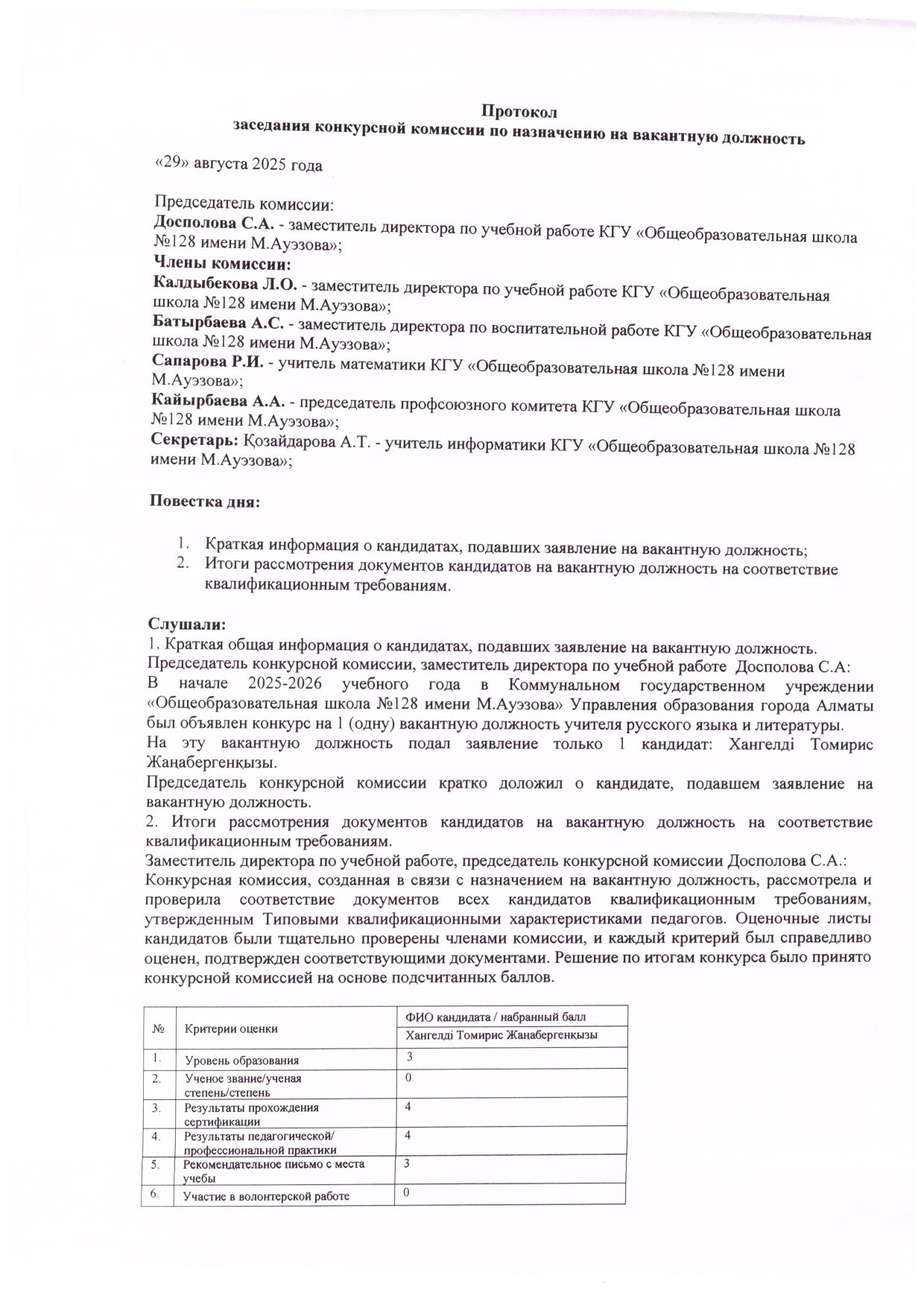 » » Бос лауазымға тағайындауға байланысты өткізілген конкурстық комиссия отырысының хаттамасы