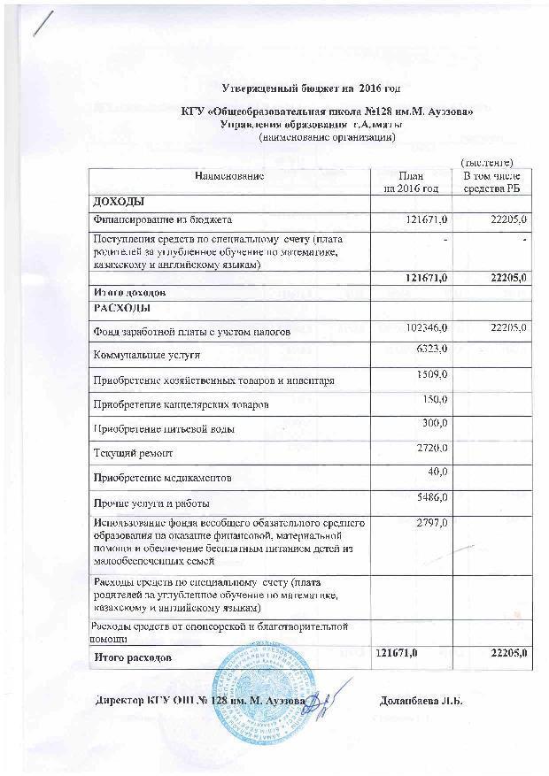 Утвержденный бюджет на 2016 год