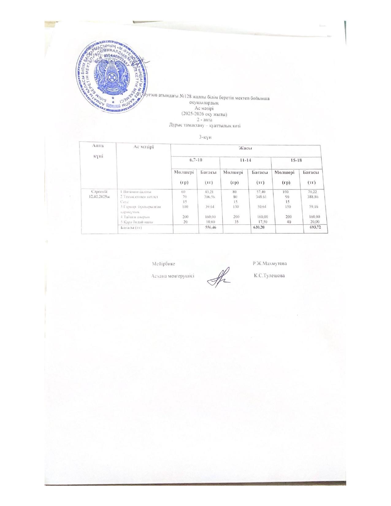 15 ноябрь 2022 Ас мәзірі 15.11.2022ж