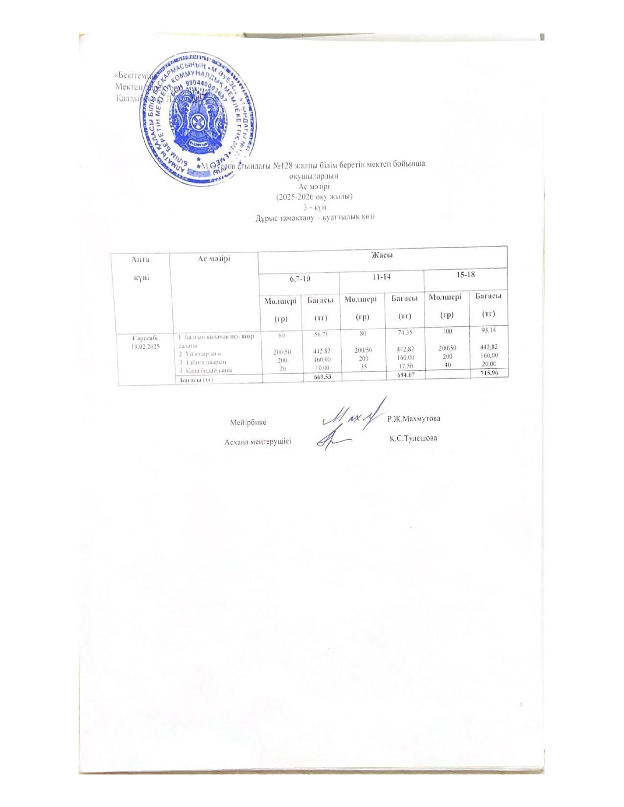 15 ноябрь 2022 Ас мәзірі 15.11.2022ж