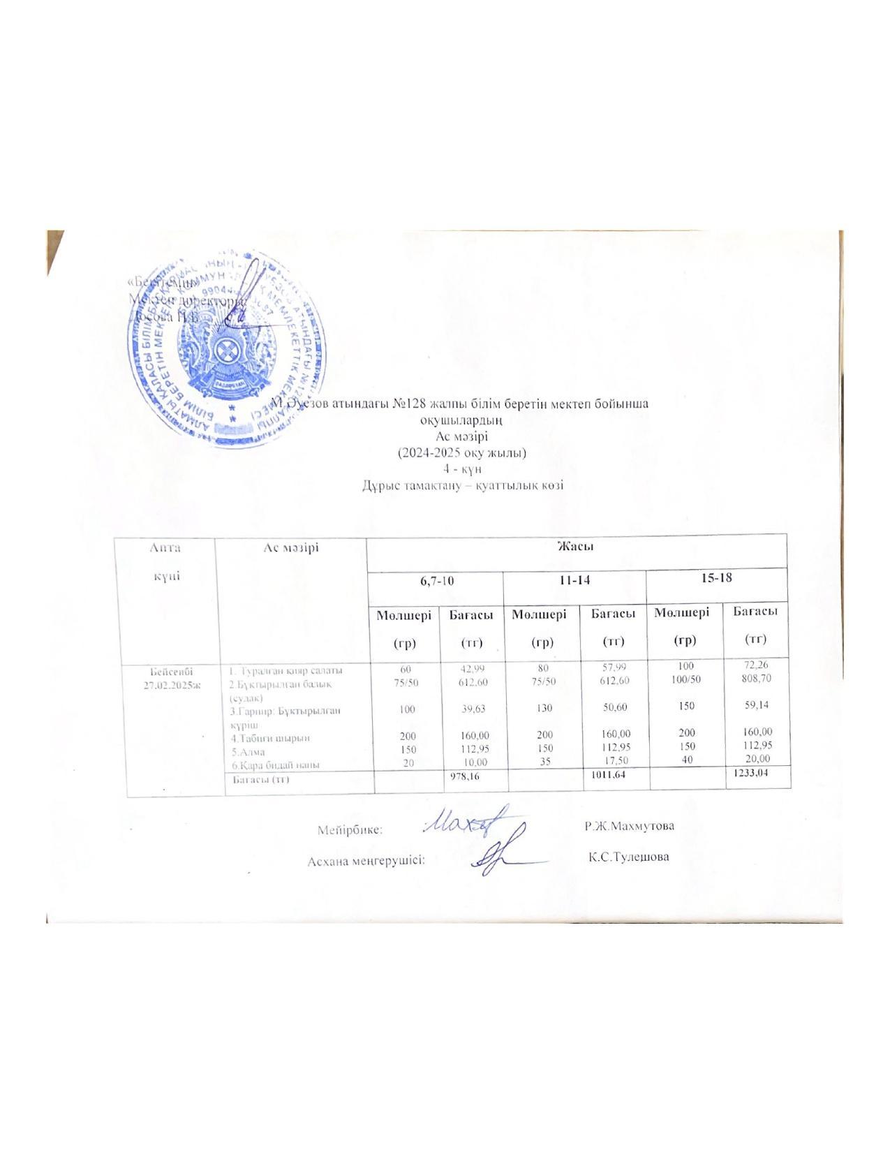 15 ноябрь 2022 Ас мәзірі 15.11.2022ж