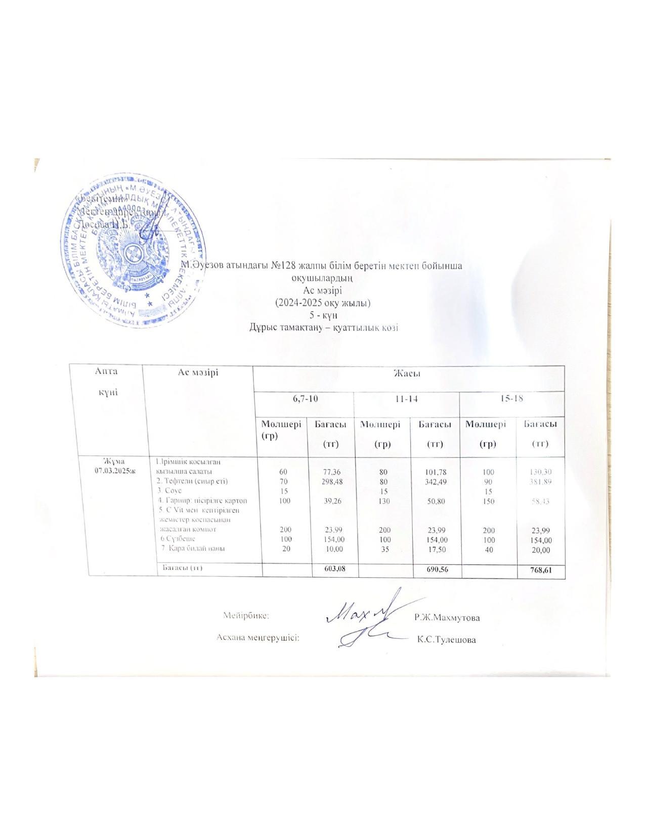 16 ноябрь 2022 Ас мәзірі 16.11.2022ж
