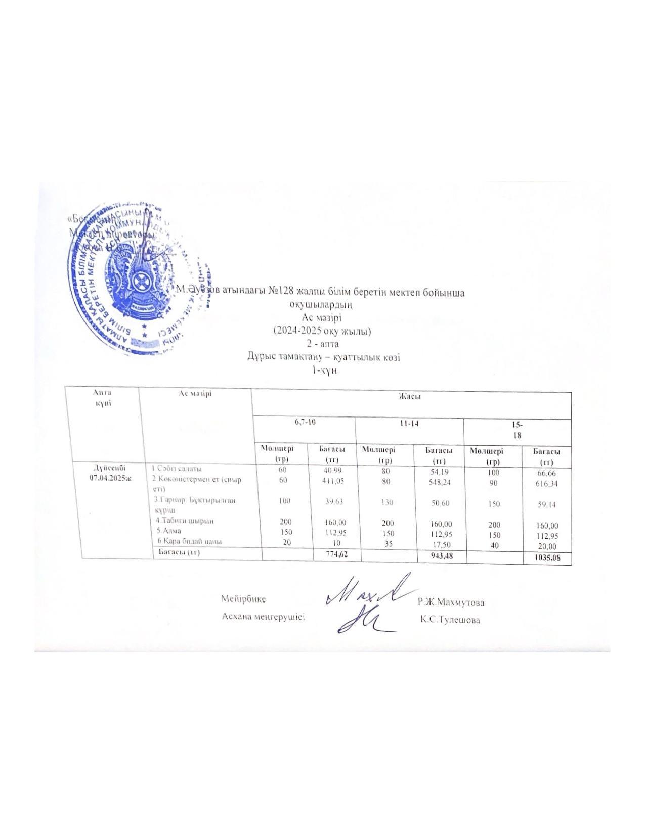 15 ноябрь 2022 Ас мәзірі 15.11.2022ж