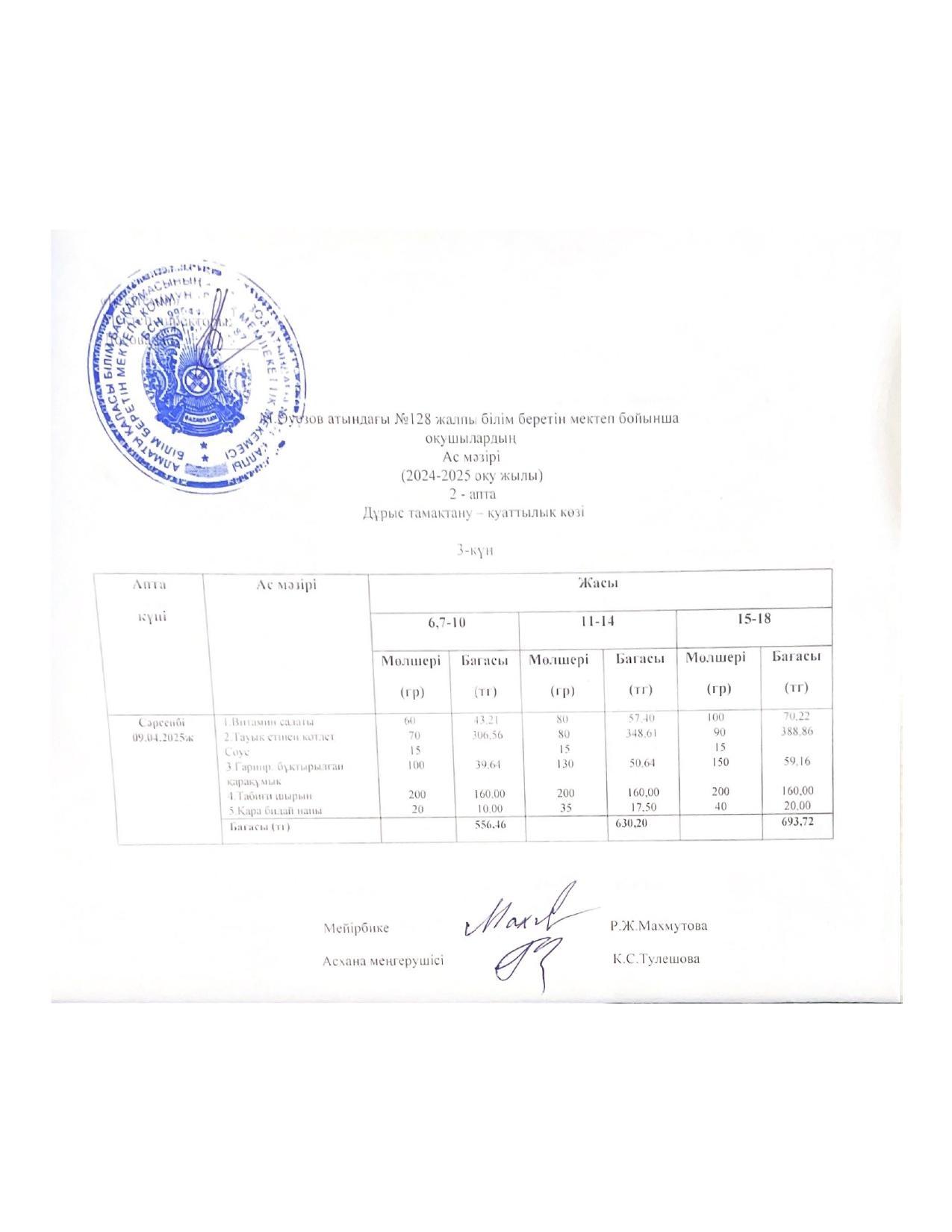 14 ноябрь 2022 Ас мәзірі 14.11.2022ж