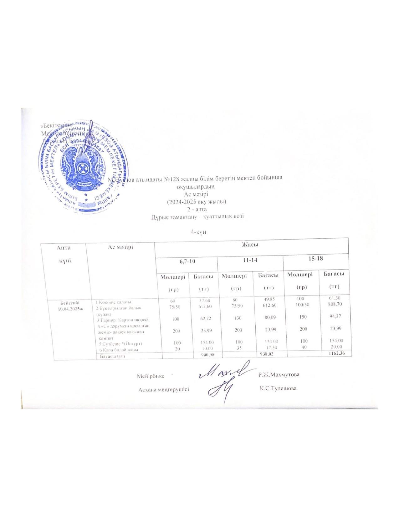 14 ноябрь 2022 Ас мәзірі 14.11.2022ж