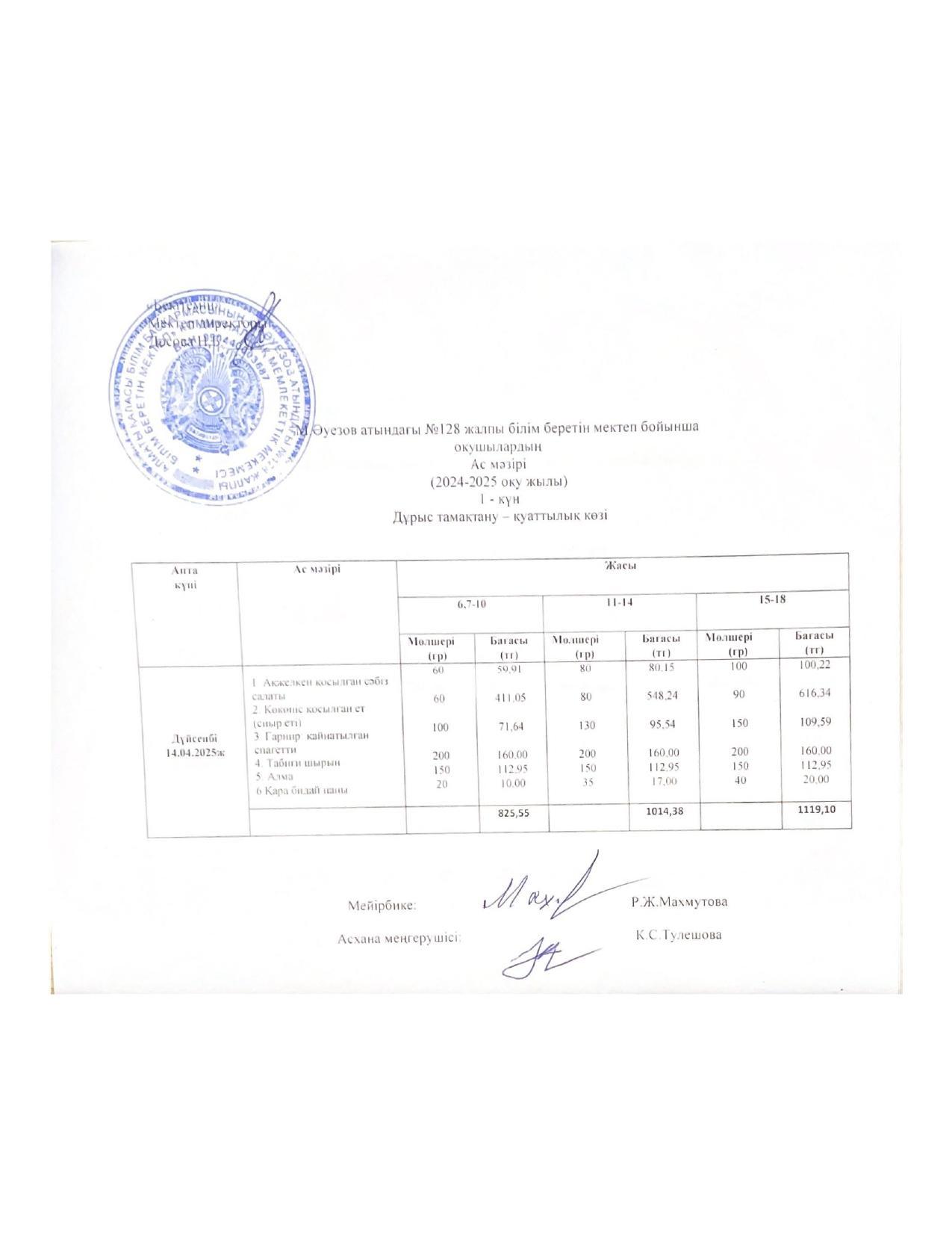 14 ноябрь 2022 Ас мәзірі 14.11.2022ж