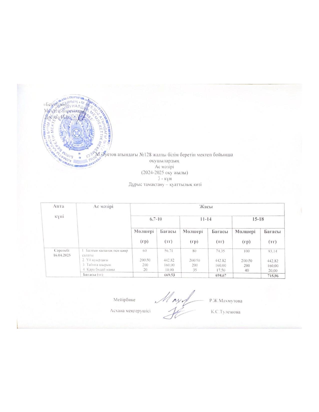 16 ноябрь 2022 Ас мәзірі 16.11.2022ж