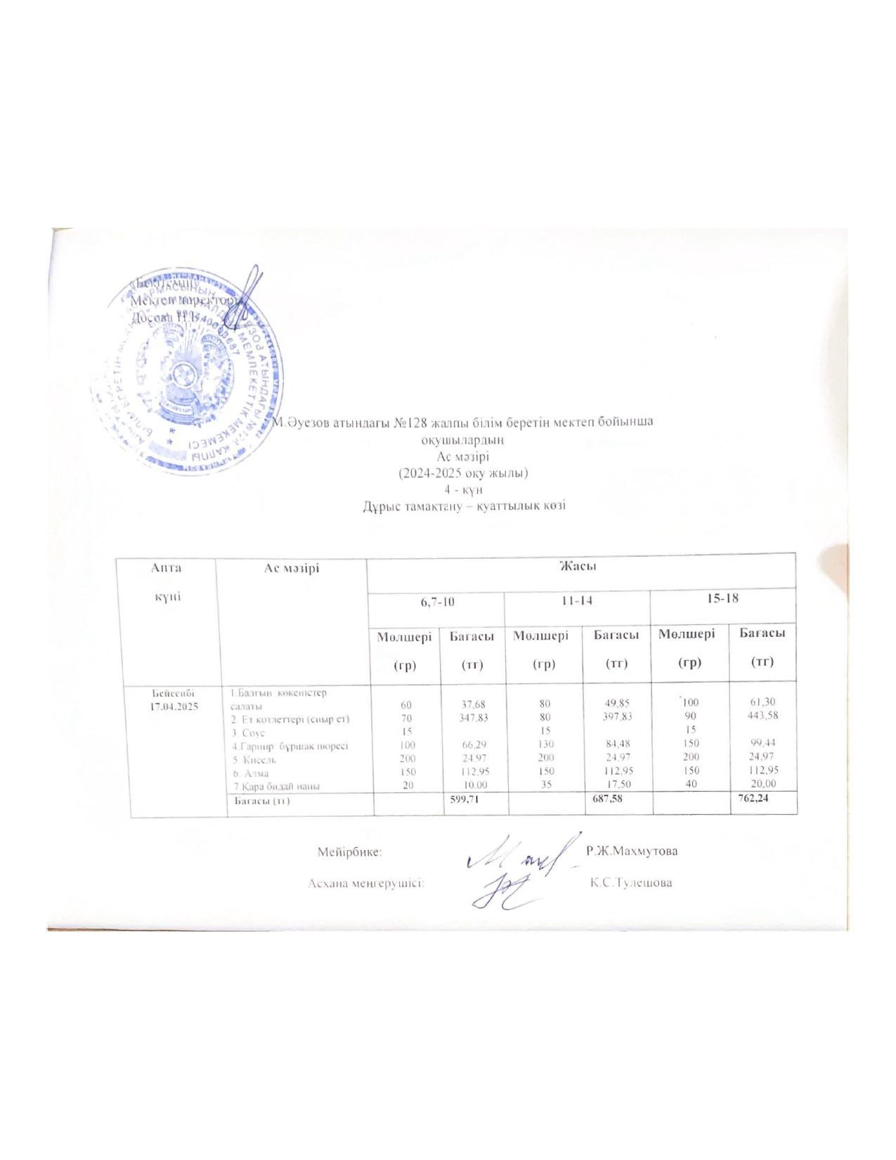 17 ноябрь 2022 Ас мәзірі 17.11.2022ж