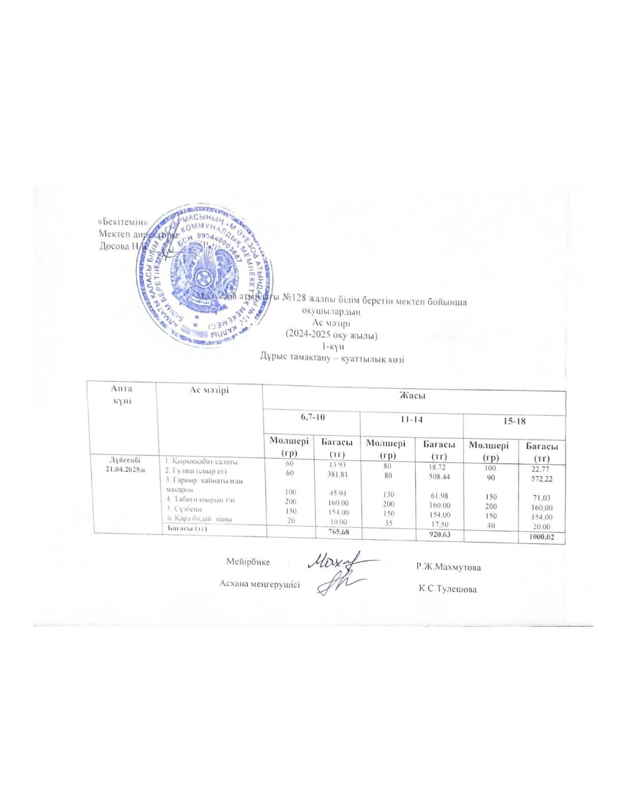 15 ноябрь 2022 Ас мәзірі 15.11.2022ж