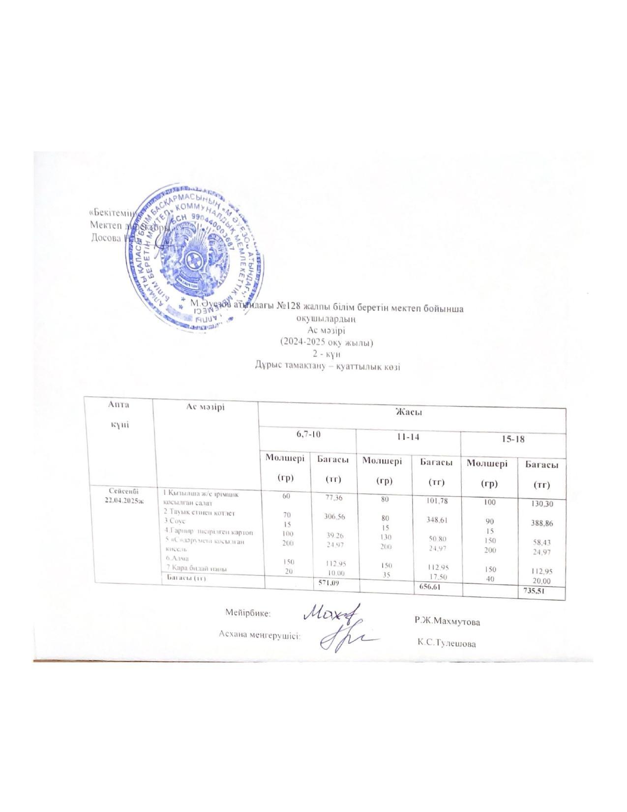 15 ноябрь 2022 Ас мәзірі 15.11.2022ж