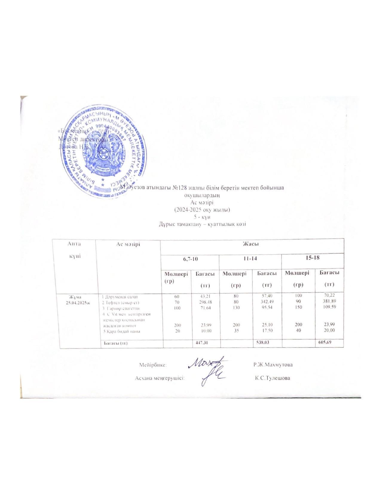 15 ноябрь 2022 Ас мәзірі 15.11.2022ж