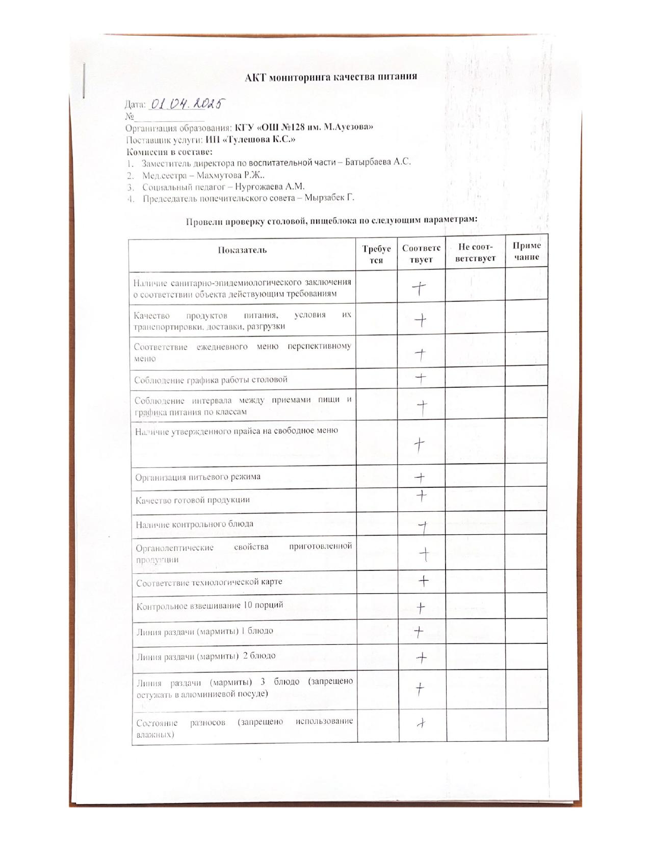 Чек-лист мониторинга за организацией школьного питания