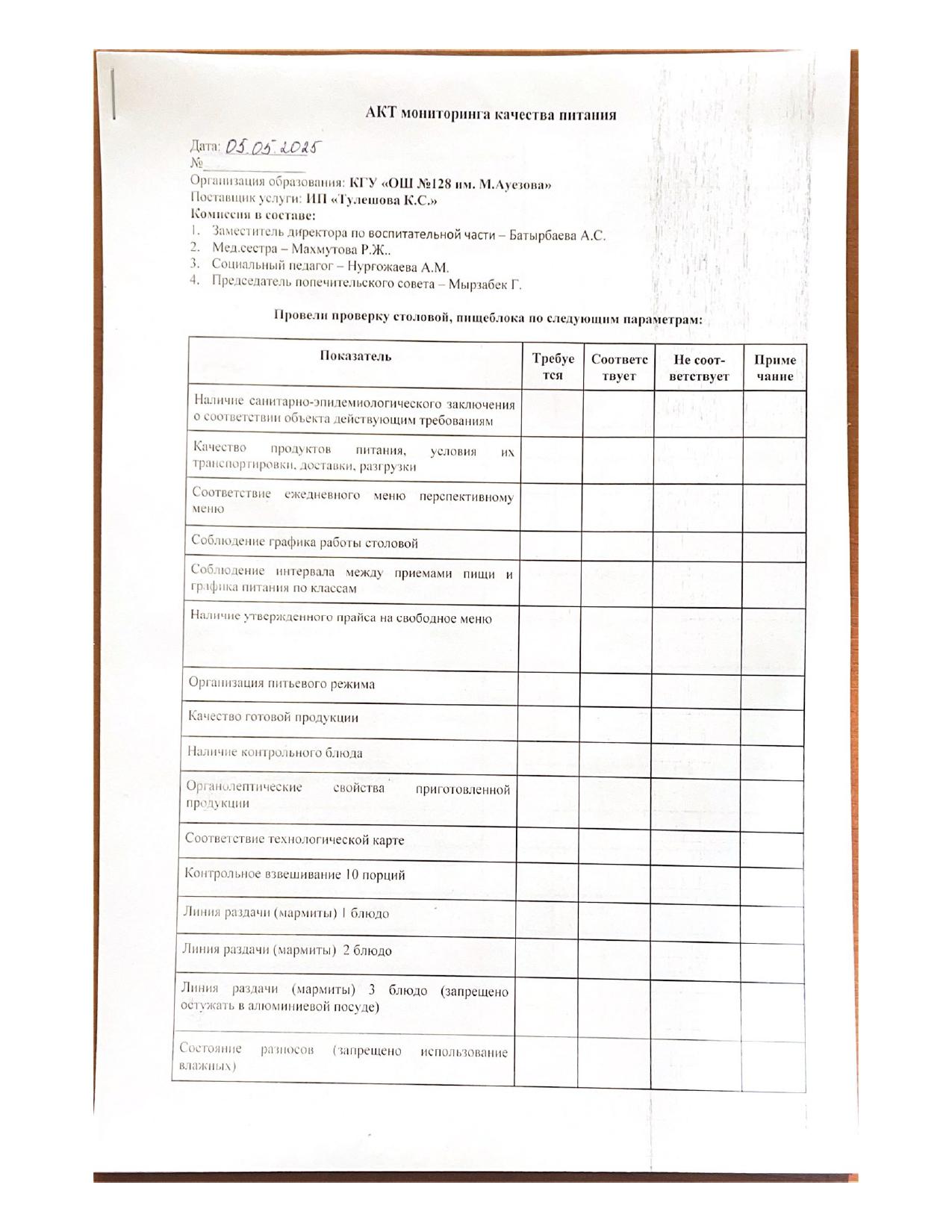 » » Чек-лист мониторинга за организацией школьного питания