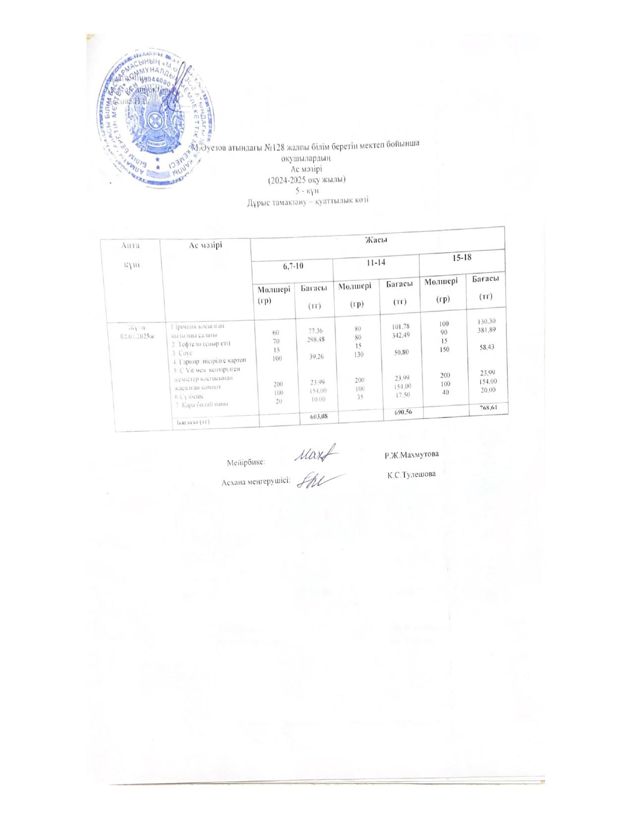 15 ноябрь 2022 Ас мәзірі 15.11.2022ж