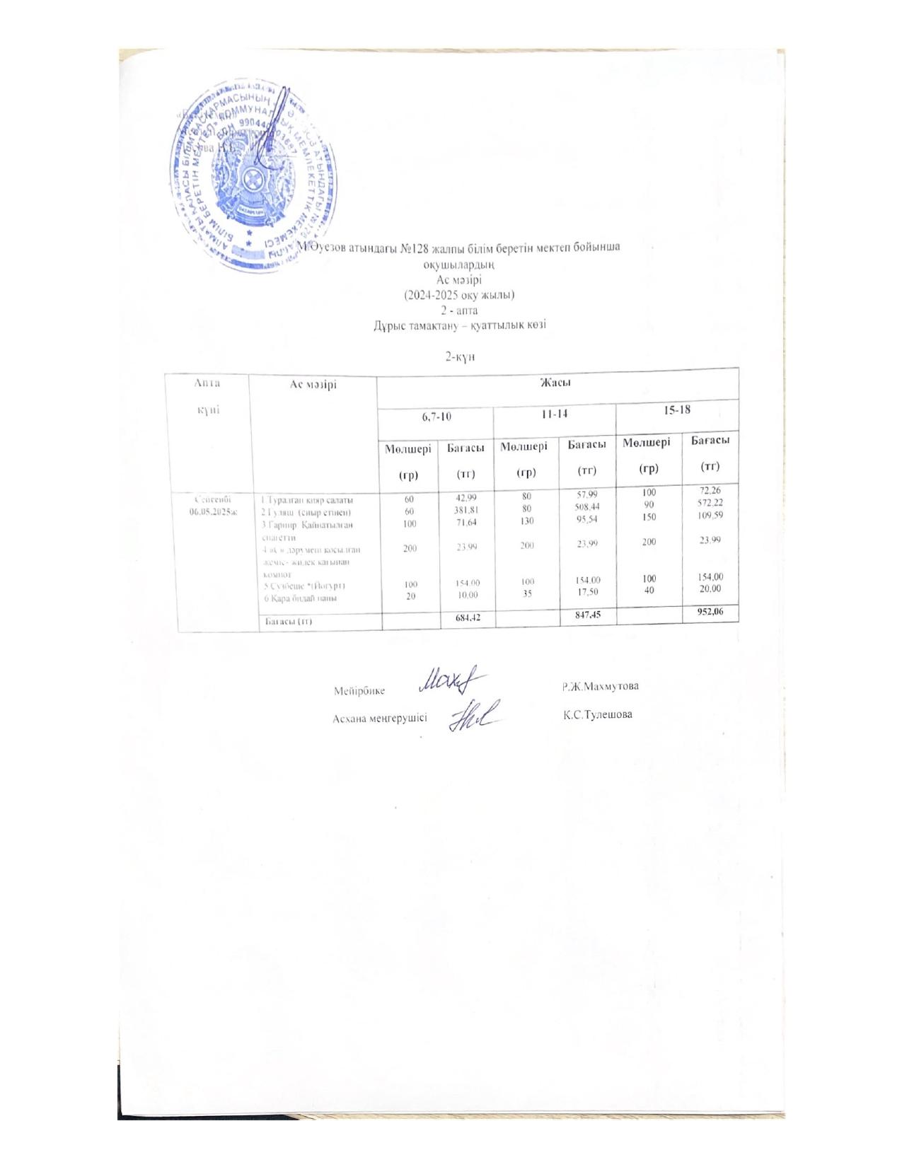 15 ноябрь 2022 Ас мәзірі 15.11.2022ж
