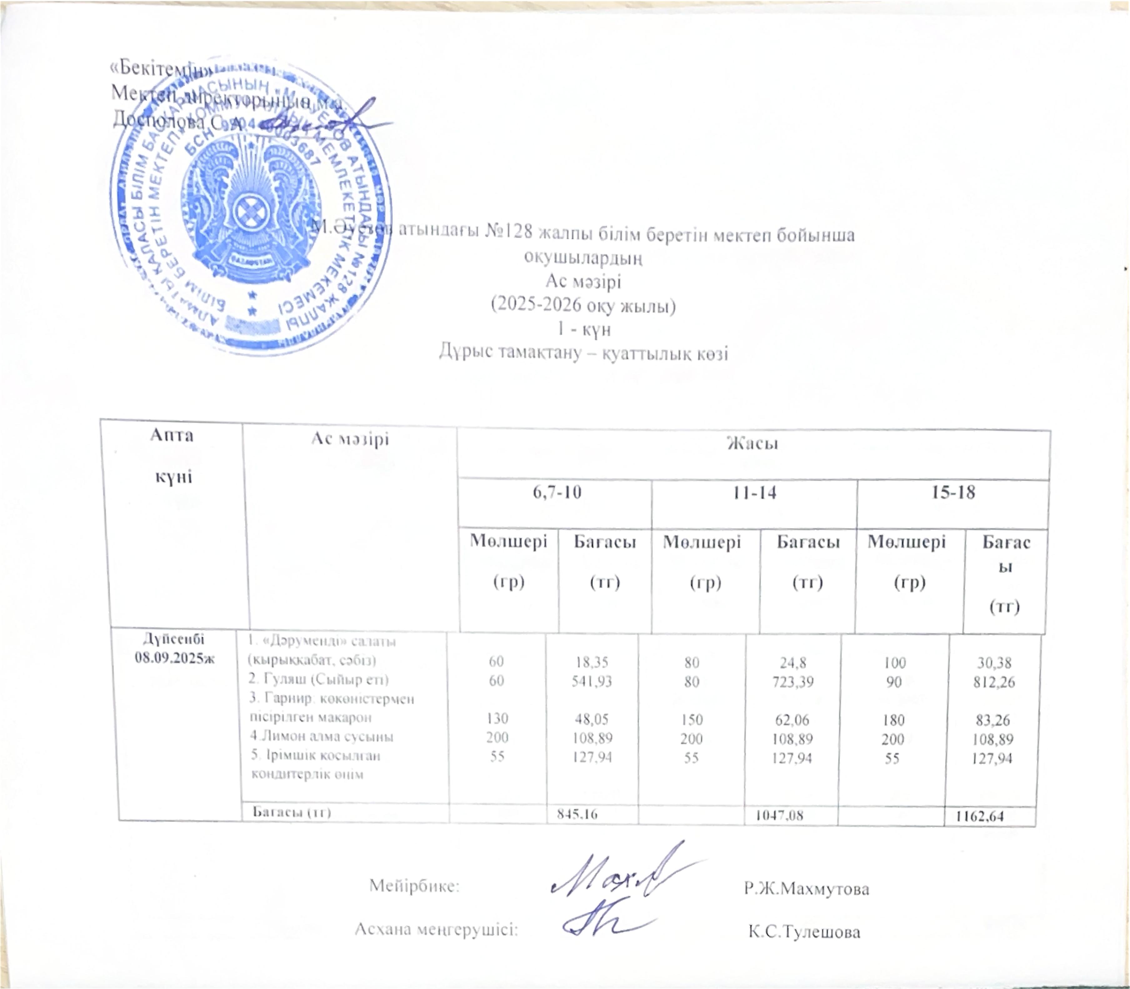 15 ноябрь 2022 Ас мәзірі 15.11.2022ж