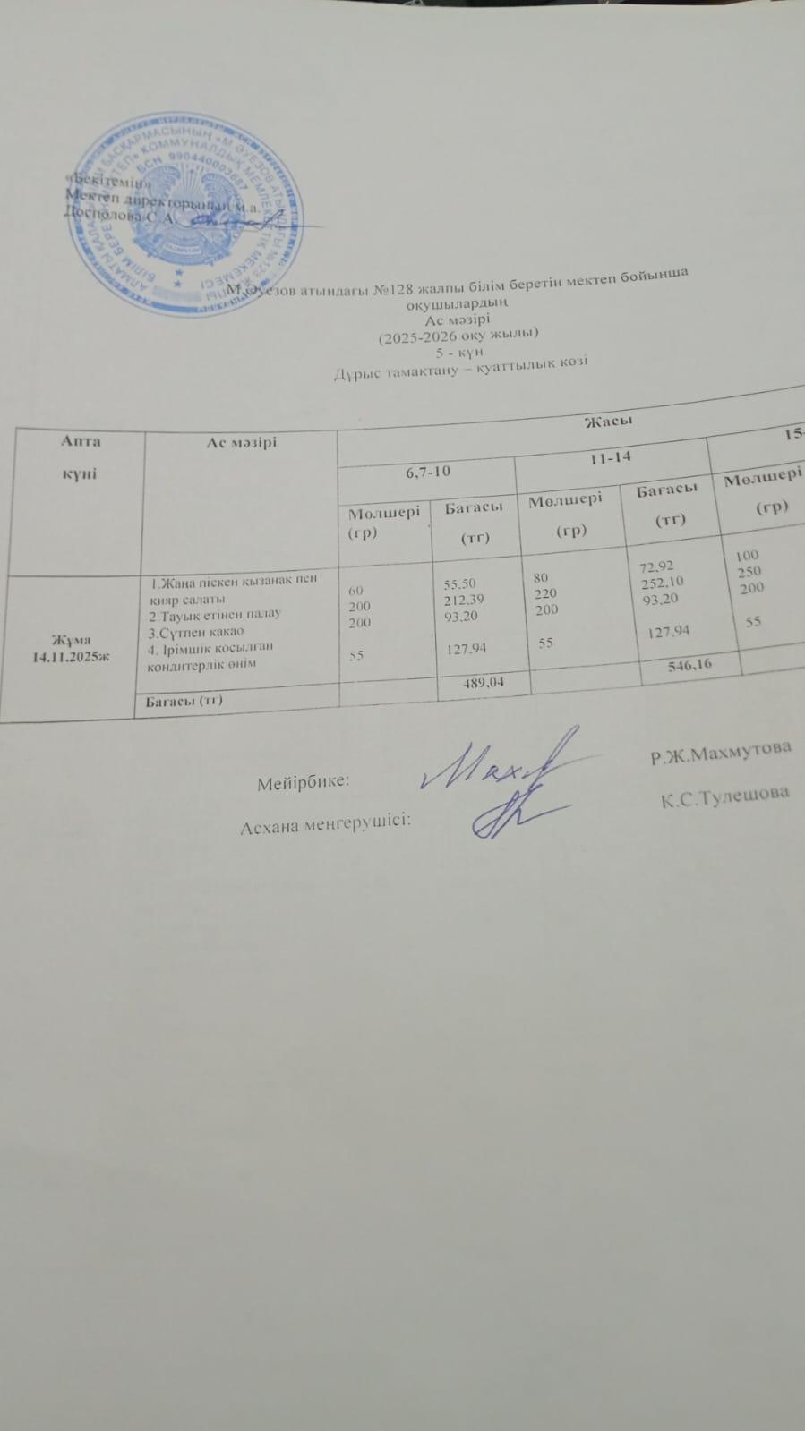 12 ноябрь 2025 Ас мәзірі 2 апта