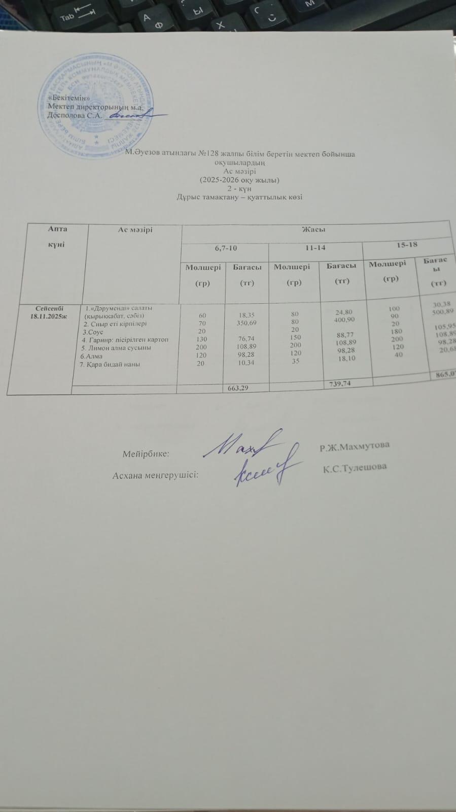 14 ноябрь 2025 Ас мәзірі 2 апта