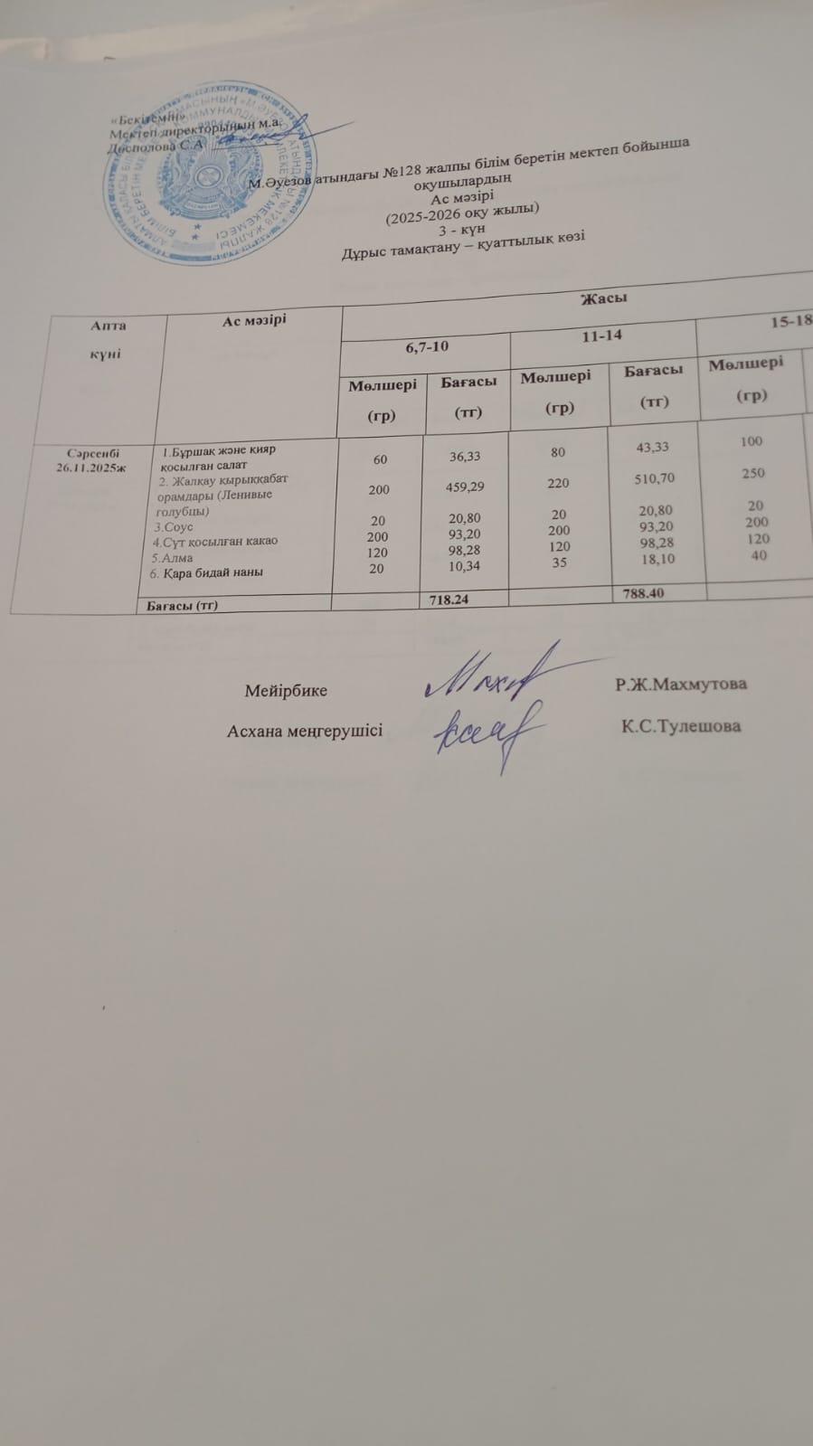 12 ноябрь 2025 Ас мәзірі 2 апта