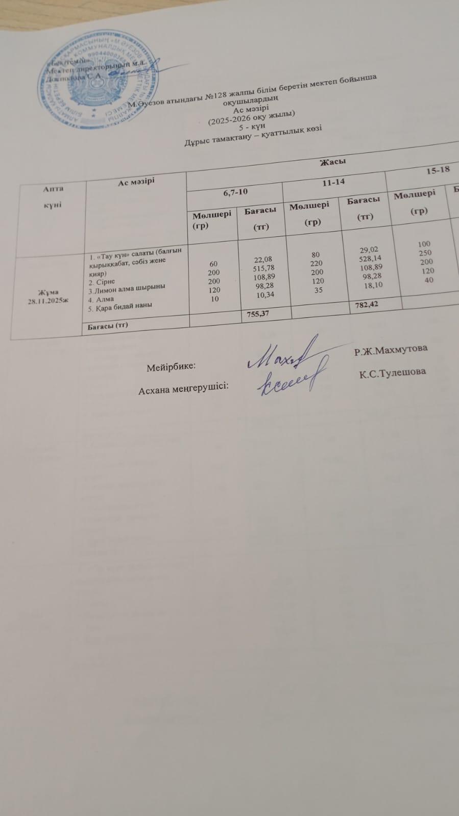 12 ноябрь 2025 Ас мәзірі 2 апта