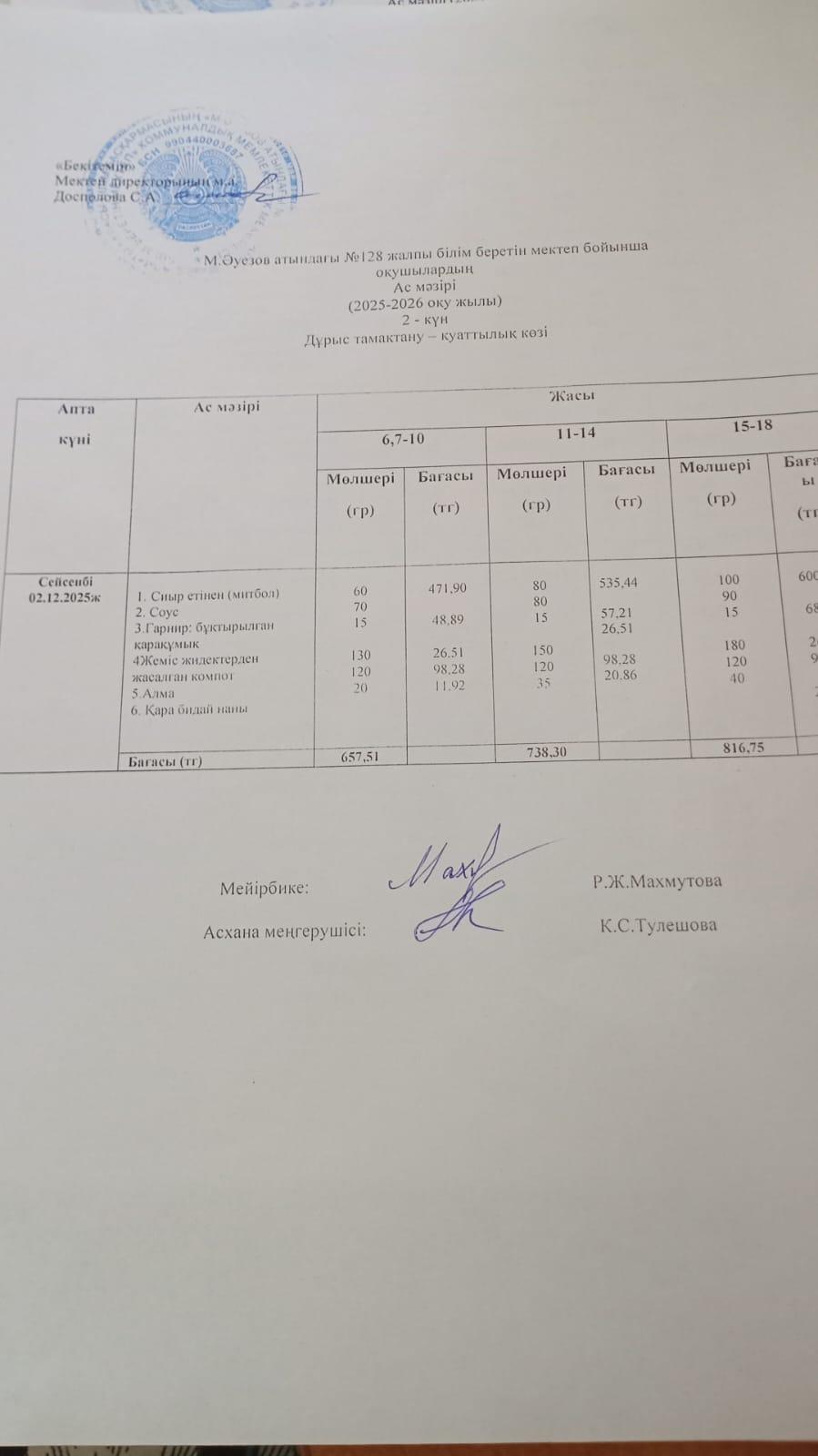 12 ноябрь 2025 Ас мәзірі 2 апта