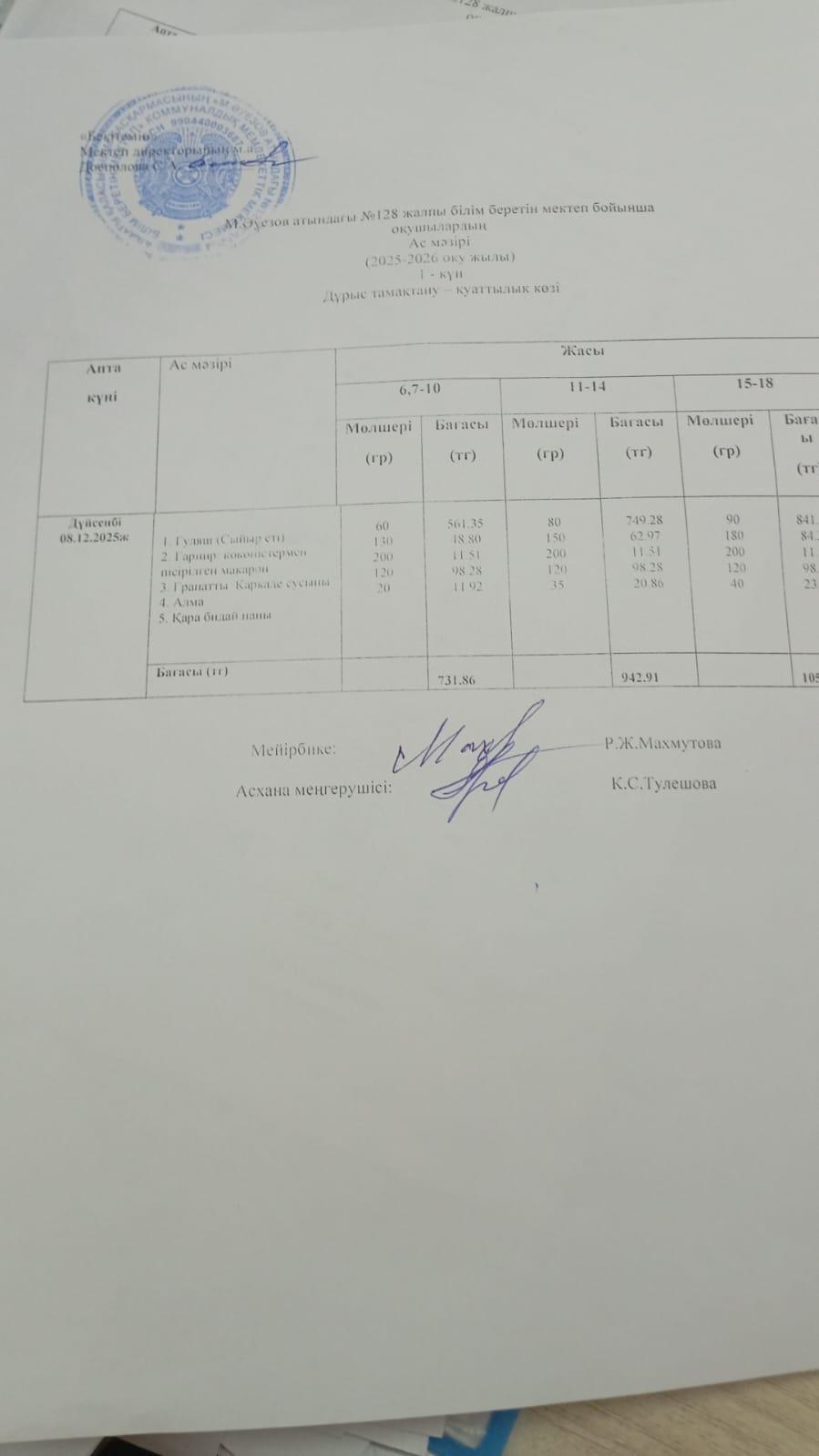 14 ноябрь 2025 Ас мәзірі 2 апта