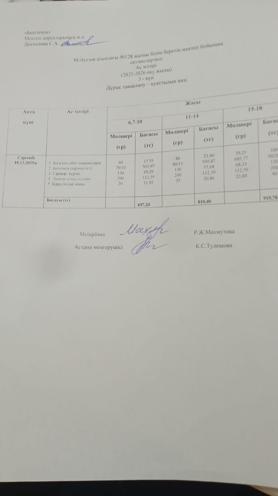 10 январь 2025 Ас мәзірі 10.01.2025ж