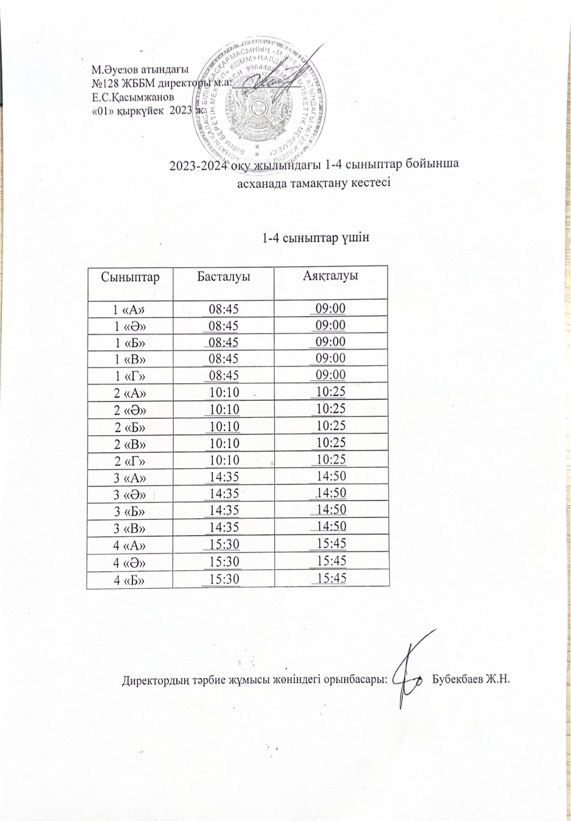 » » » 1-4 сынып оқушыларына арналған мектеп асханасындағы тамақтану кестесі